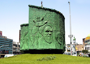 میدان انقلاب اسلامی تهران و مجسمه آن که در عین سادگی و بی ریایی در بر دارنده مفاهیم بلندی بود و نقش امام راحل بر آن قرار داشت و همچنین به همراه مشتی گره کرده که نشان از پایداری اسلامی را تداعی میکرد، در اردیبهشت ماه سال 89 با سازه ای عجیب